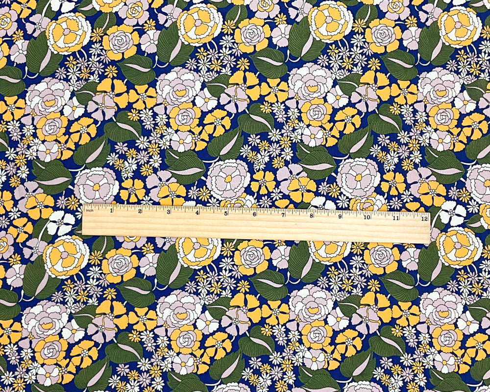 -Blue-Yellow-Multi Rayon Floral Printed Crepe Faille Woven Fabric