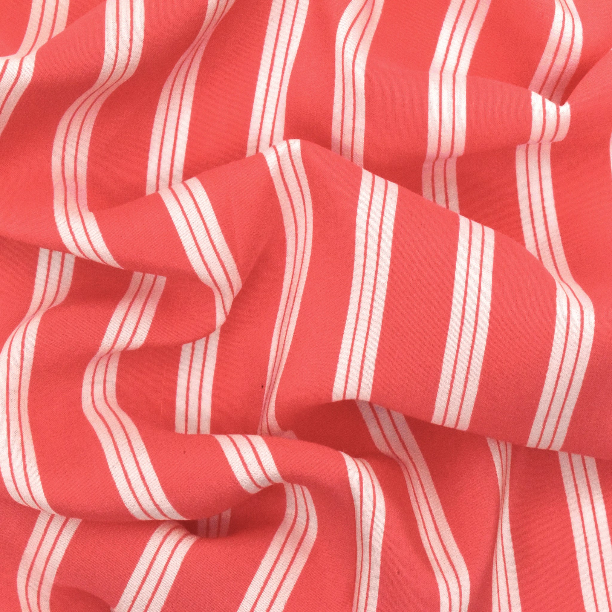 Watermelon Pink-Ivory Stripe Printed Silk Faille Woven Fabric