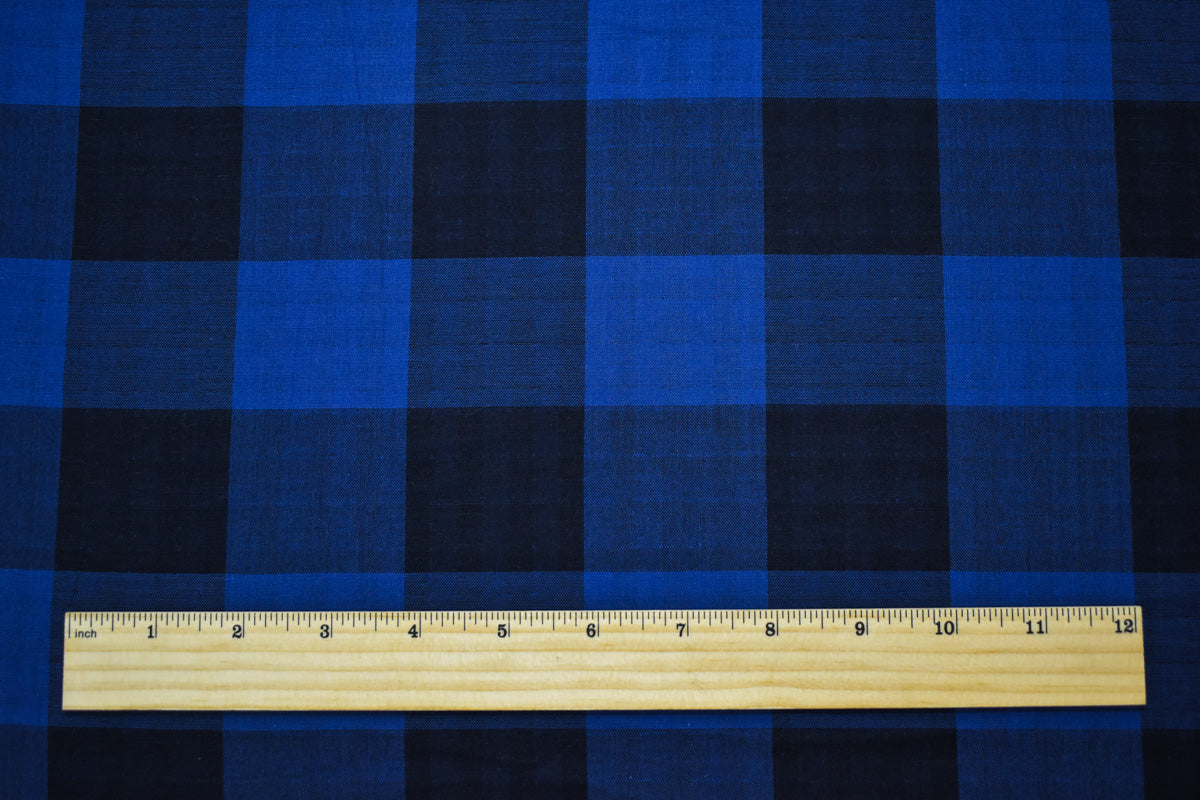 Black-Blue Famous Maker Cotton Check/Gingham Double Gauze Woven Fabric