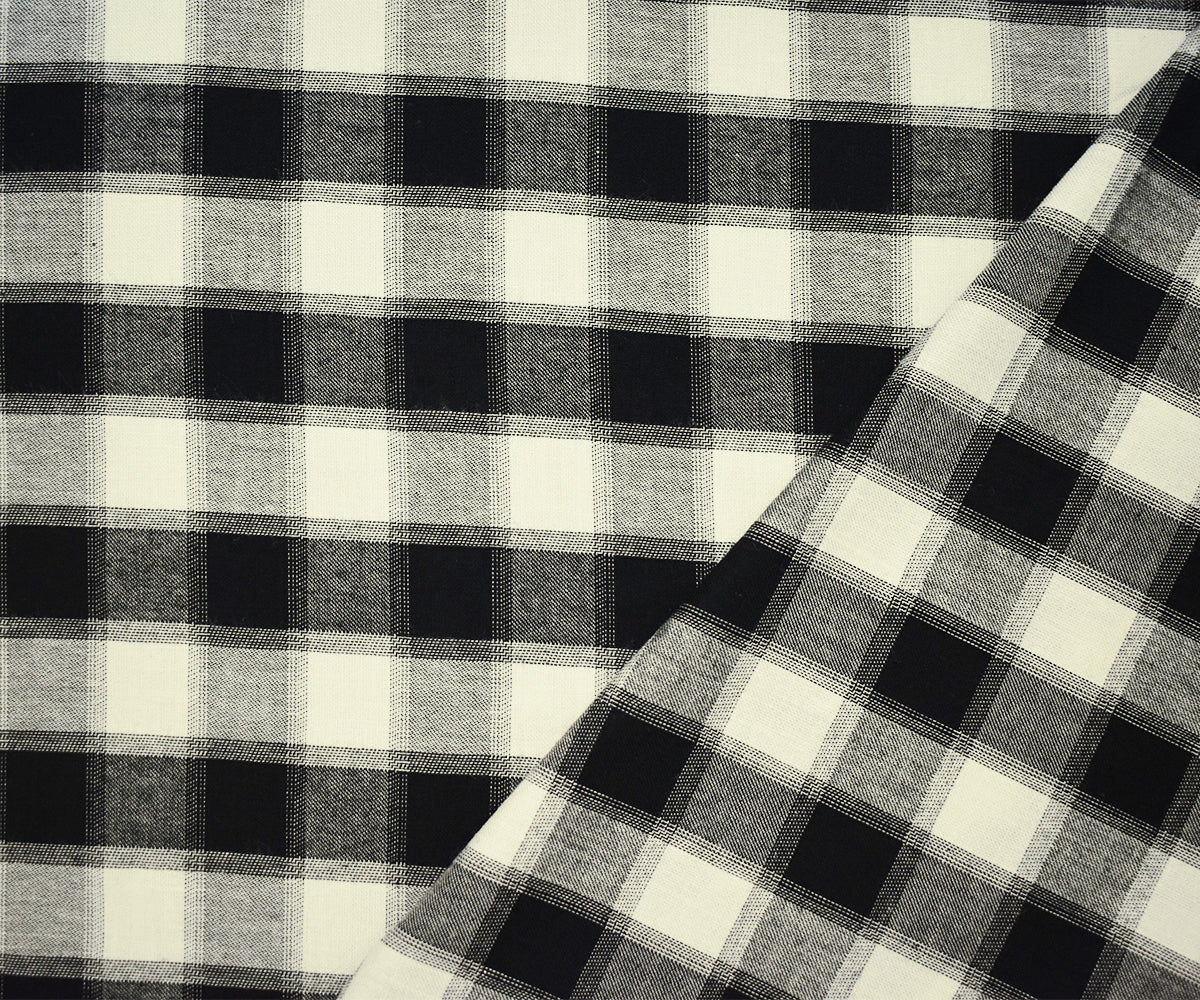 Black-Ivory Cotton-Rayon Famous Maker Plaid Check Twill Woven Fabric
