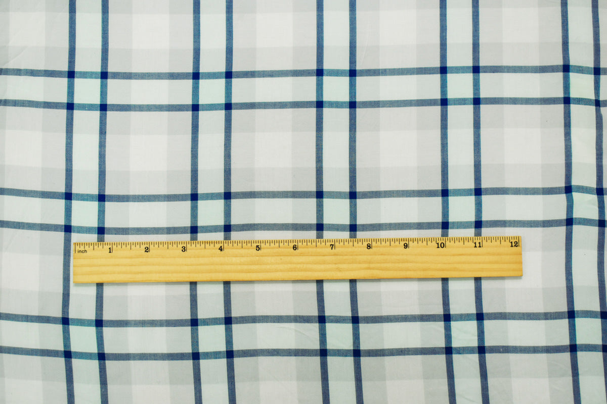 Blue-White-Multi Famous Maker Rayon Plaid Woven Fabric
