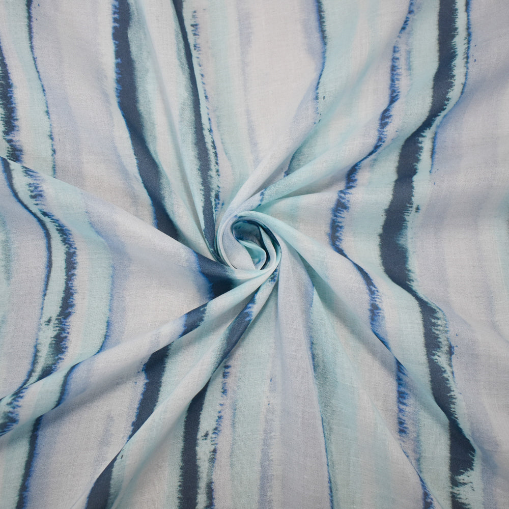Teal-Blue-Multi Cotton Famous Maker Abstract Printed Batiste Woven Fabric