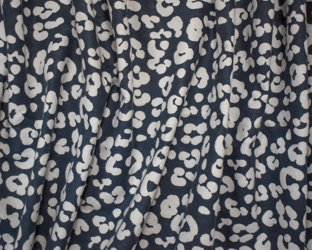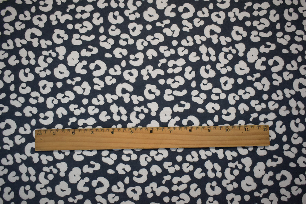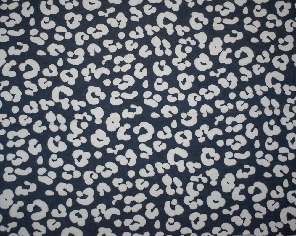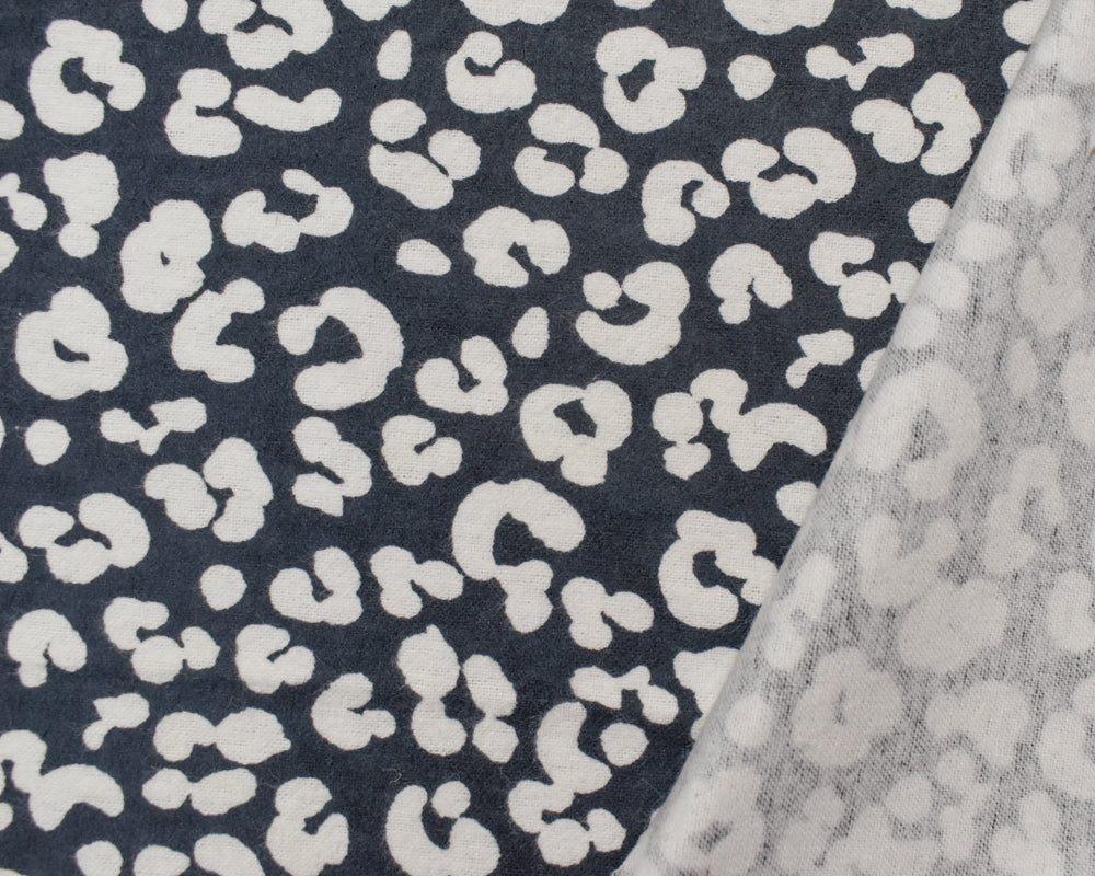 Deep Gray-White Cotton Leopard Printed Flannel Woven Fabric