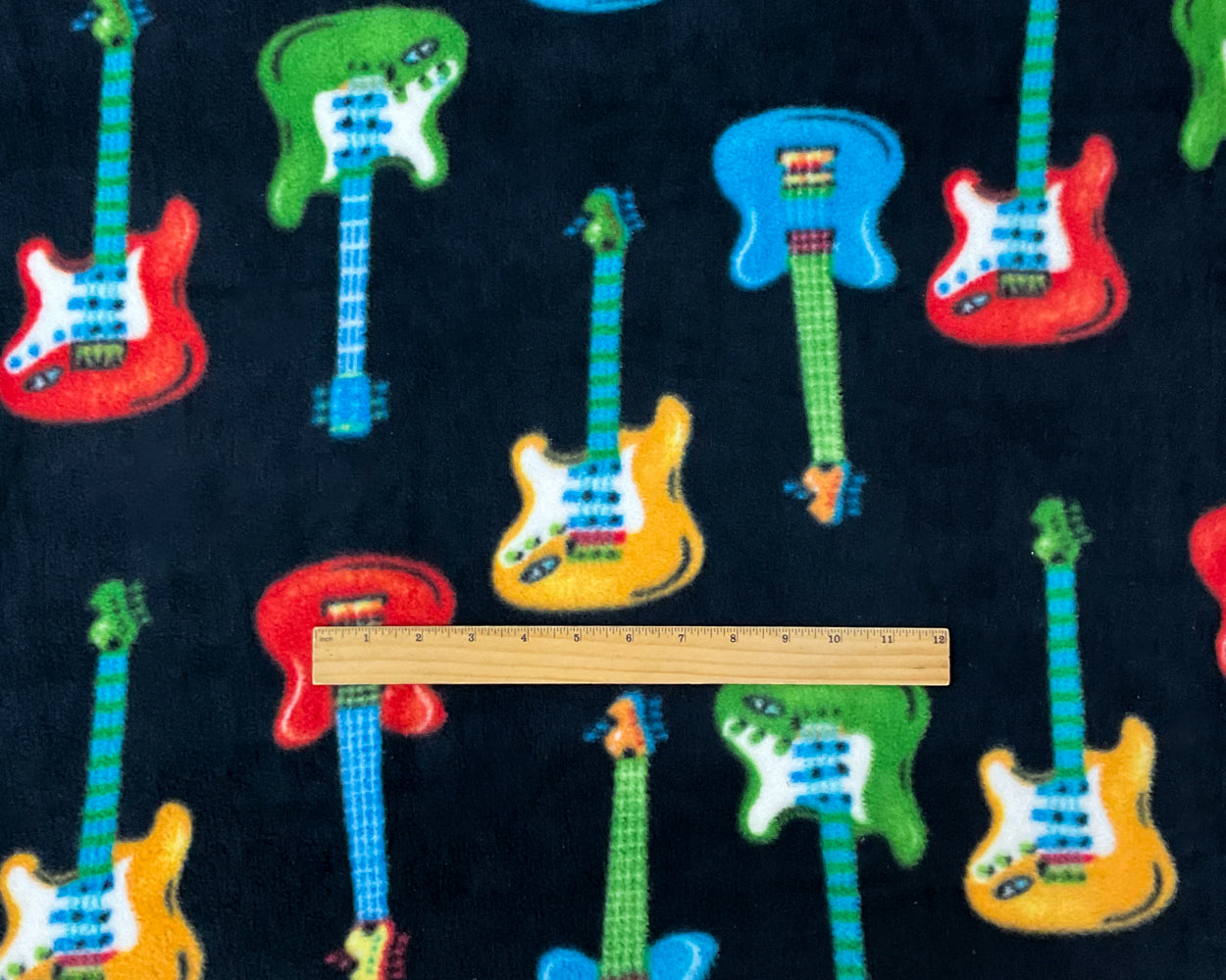 Black-Multi Polyester Guitar Printed Polar Fleece Knit Fabric
