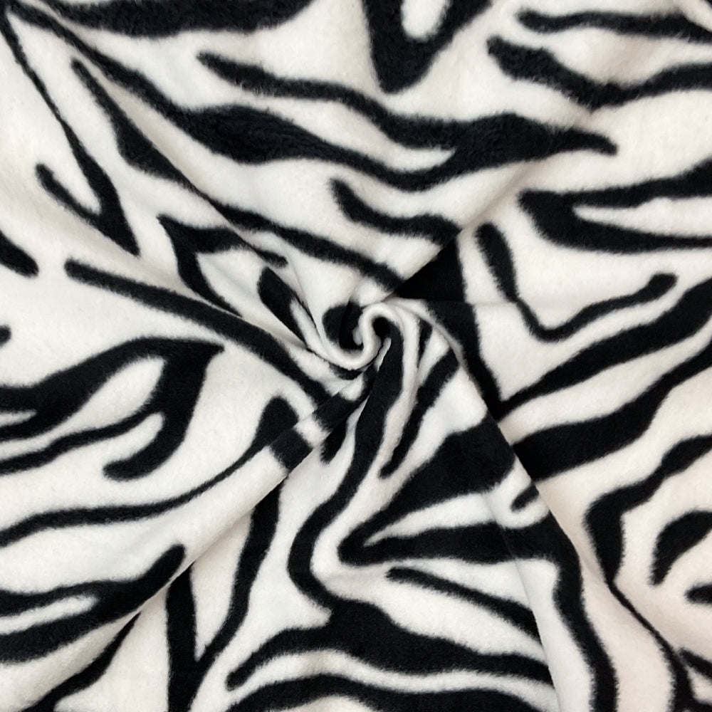 White-Black Polyester Tiger Printed Polar Fleece Knit Fabric