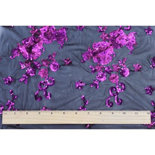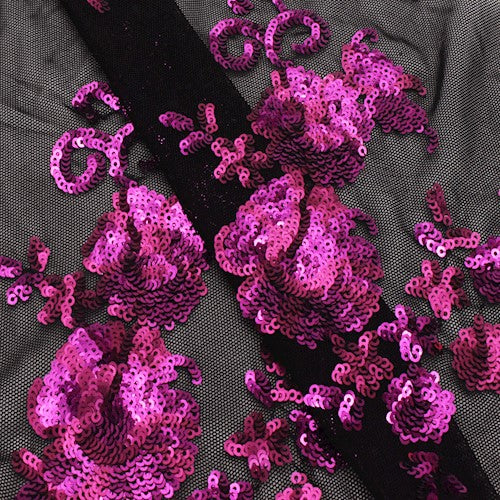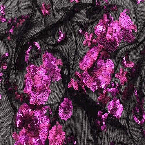 2 YD PC-Black/Pink/Purple Floral Sequined Stretch Mesh fabric