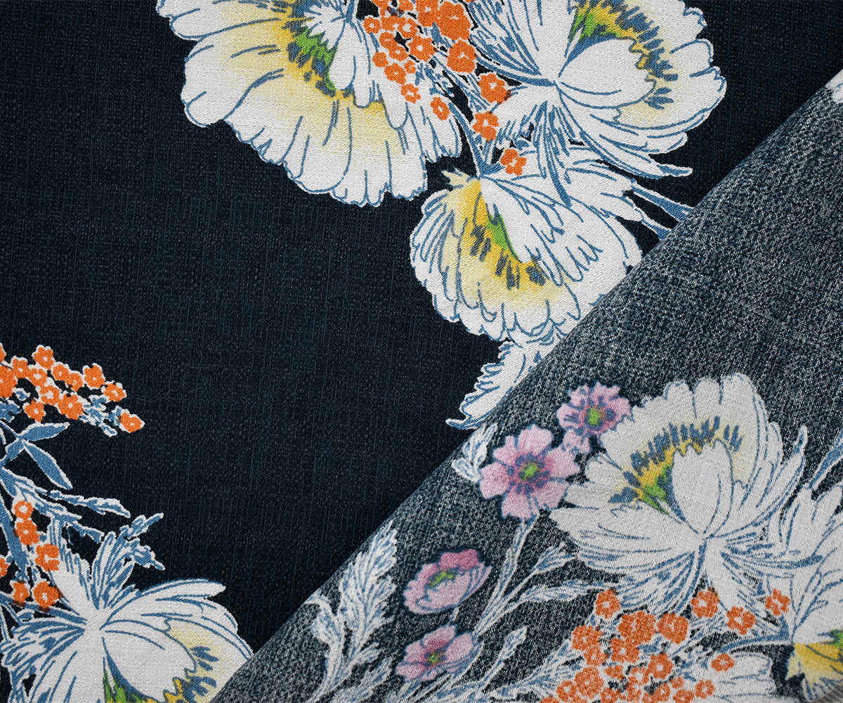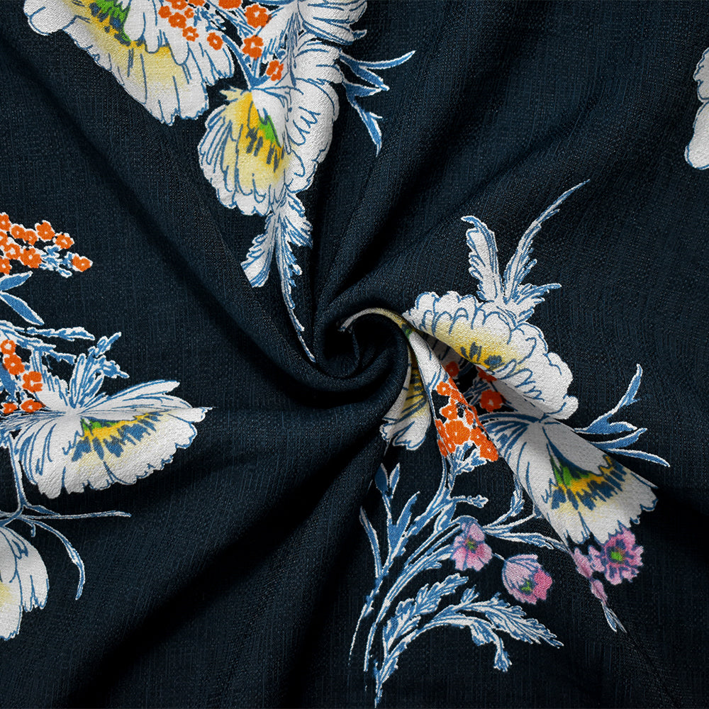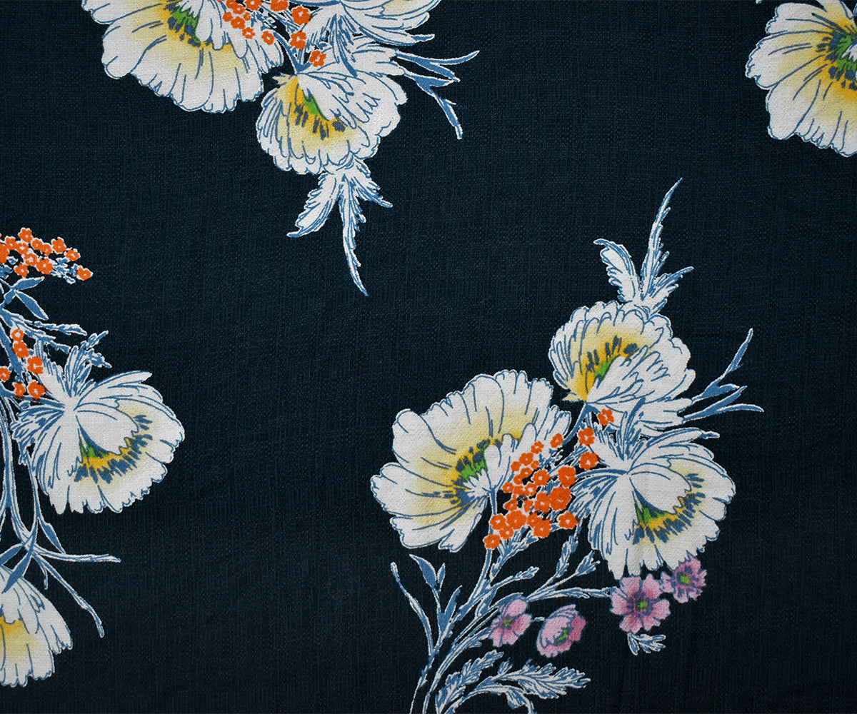 3 YD PC-Dark Navy-Yellow-Multi Cotton Poly Floral Printed Dobby Woven Fabric
