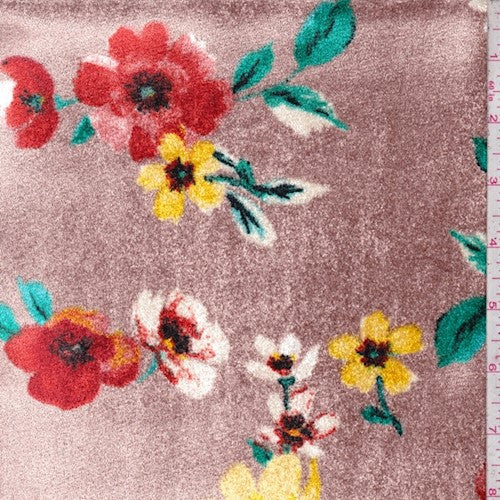 3 YD PC -Beautiful floral pattern printed on a lustrous velvet knit fabric