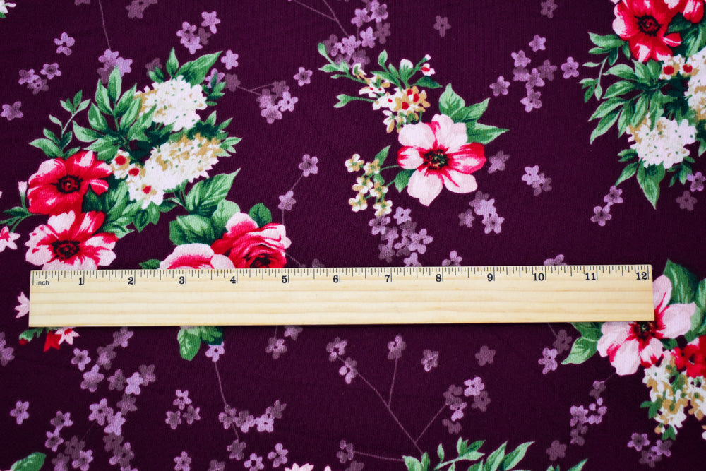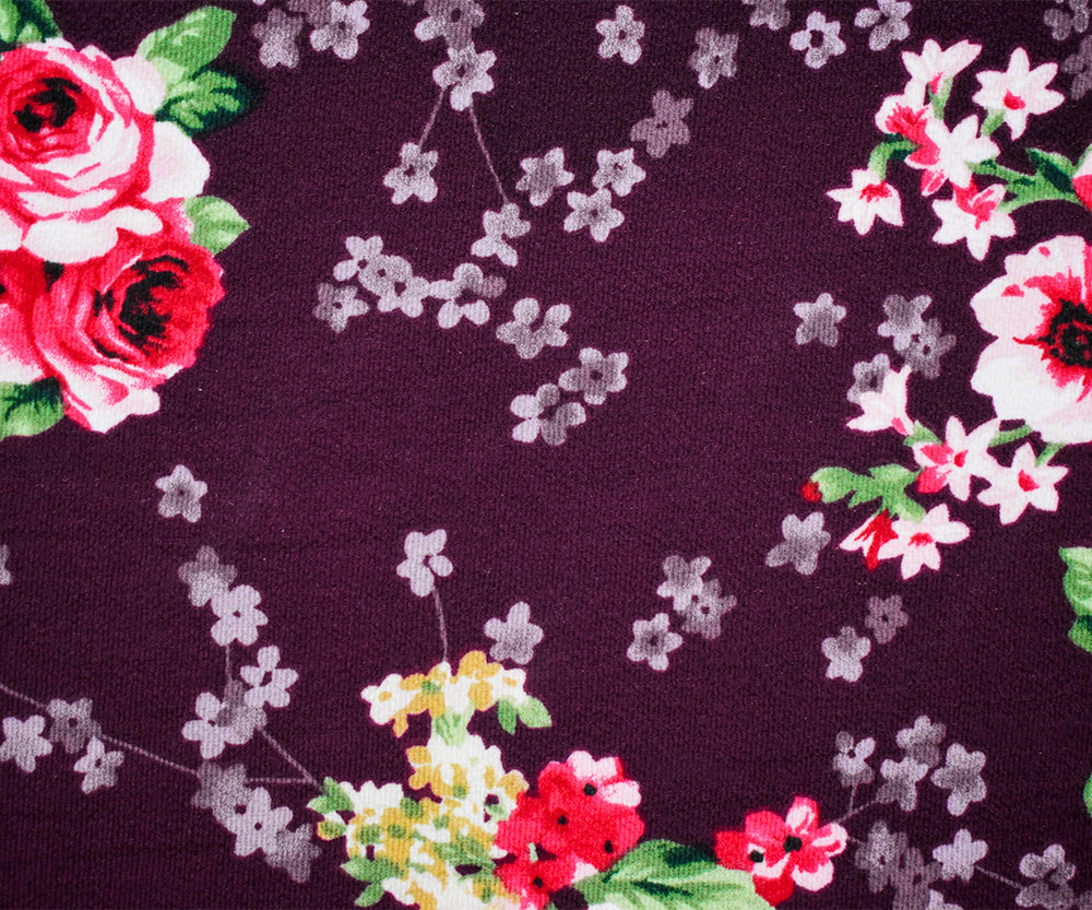 4 1/2 YD PC-Deep Burgundy-Multi Poly Floral Printed Pebble Crepe Woven Fabric