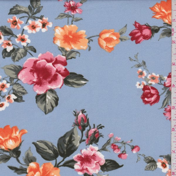 4 1/2 YD PC-Periwinkle Floral Double Brushed Jersey Knit Fabric