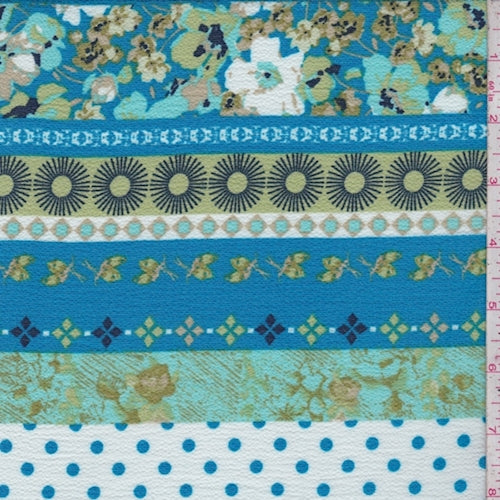 Aqua/Avocado/White Dot/Floral Stripe Pebble Crepe Fabric