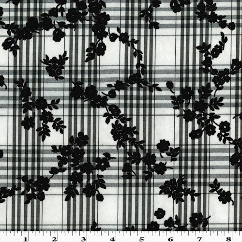 Deep Gray/Multi Velvet Flocked Floral Print Plaid Shirting Fabric