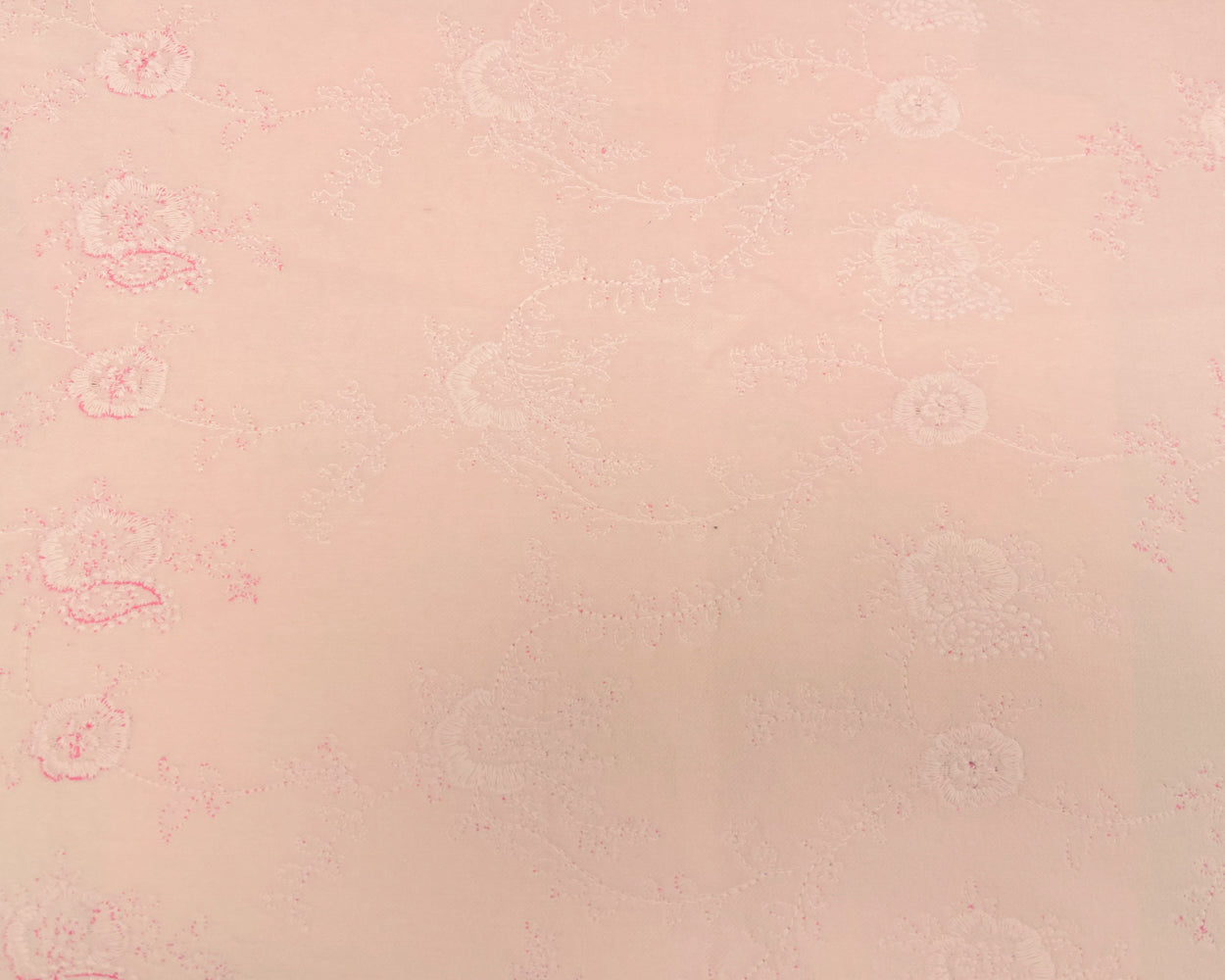 Pastel Pink Cotton Floral Embroidered Velveteen Woven Fabric