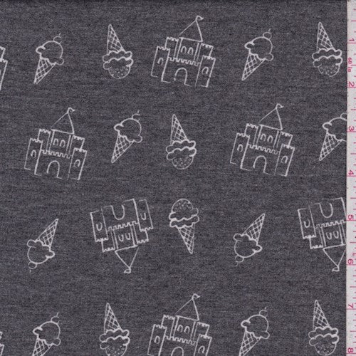 Charcoal Ice Cream Castle Brushed French Terry Knit Fabric