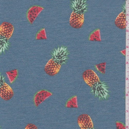 Dusty Blue Tossed Fruit Brushed French Terry Knit Fabric