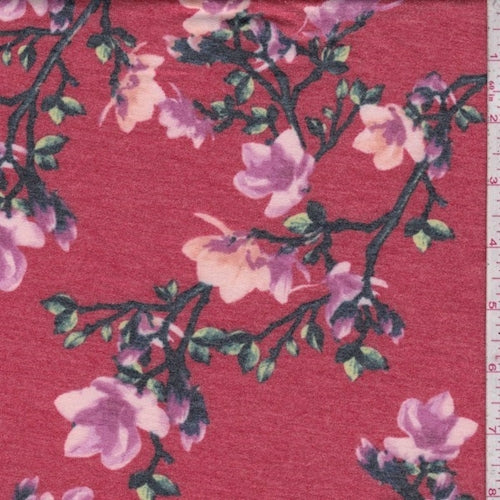 Heather Red Floral Sprig Double Brushed French Terry Knit Fabric