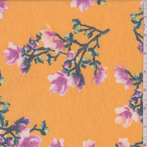 Marigold Yellow Floral Sprig Double Brushed French Terry Knit Fabric