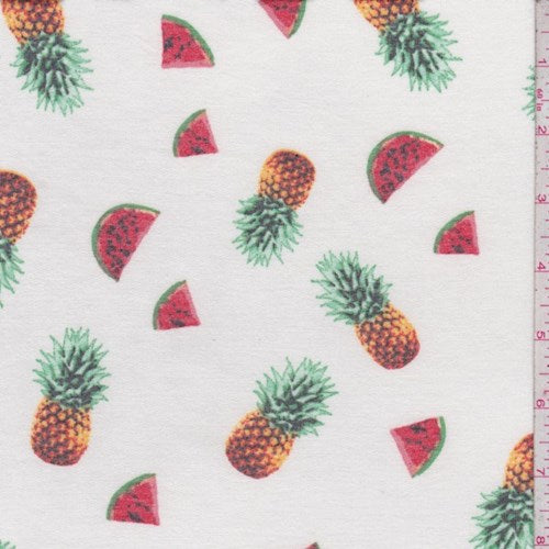 Off White Tossed Fruit Brushed French Terry Knit Fabric
