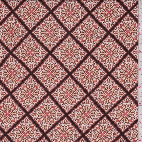 Persimmon Orange Scroll Lattice Crinkled Gauze Fabric