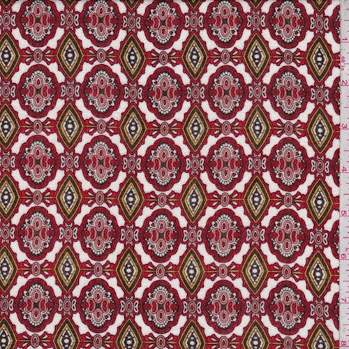 White/Crimson Geo Medallion Crinkled Gauze Fabric