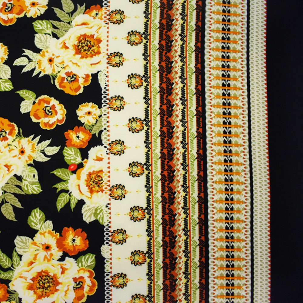 Black-Multi Poly Floral Border Printed Crepe Momie Georgette Woven Fabric