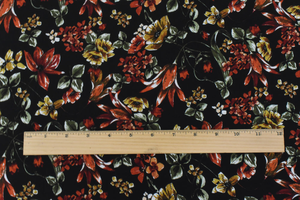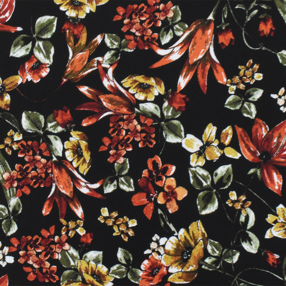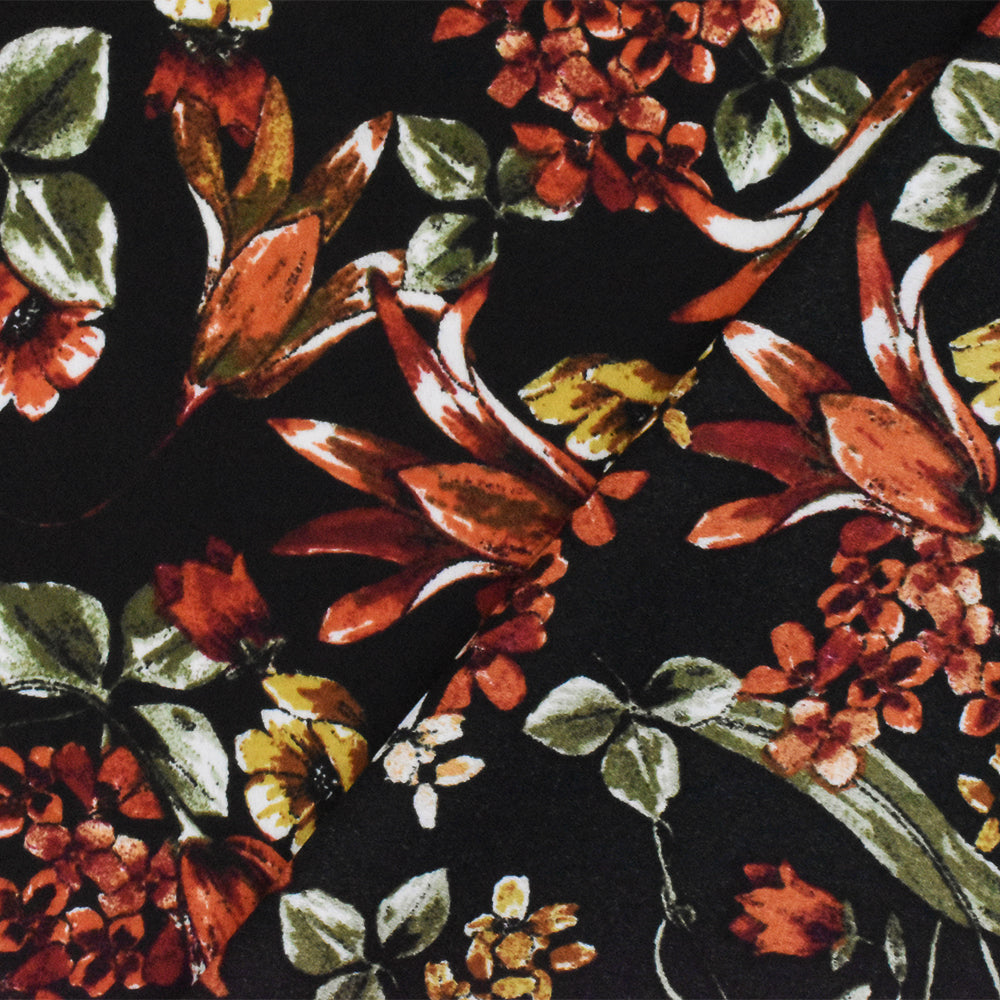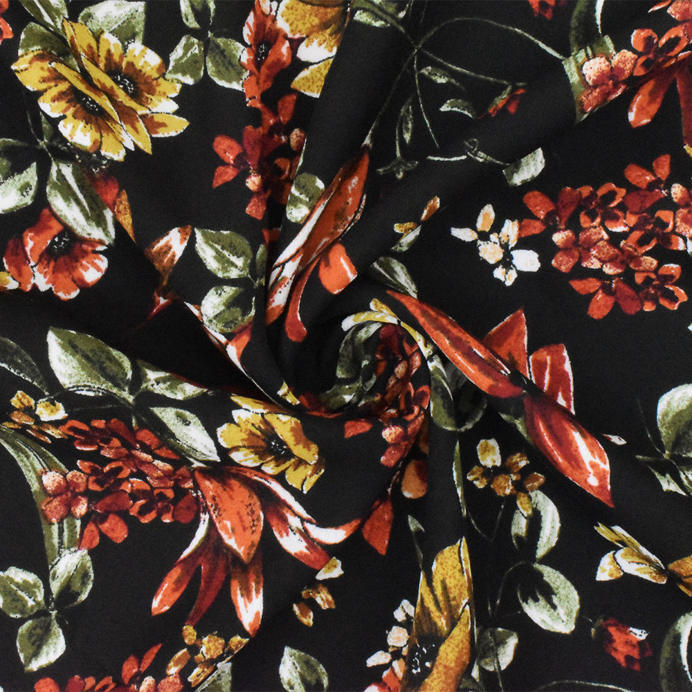 Black-Orange-Multi Polyester Floral Printed Momie Crepe Georgette Woven Fabric