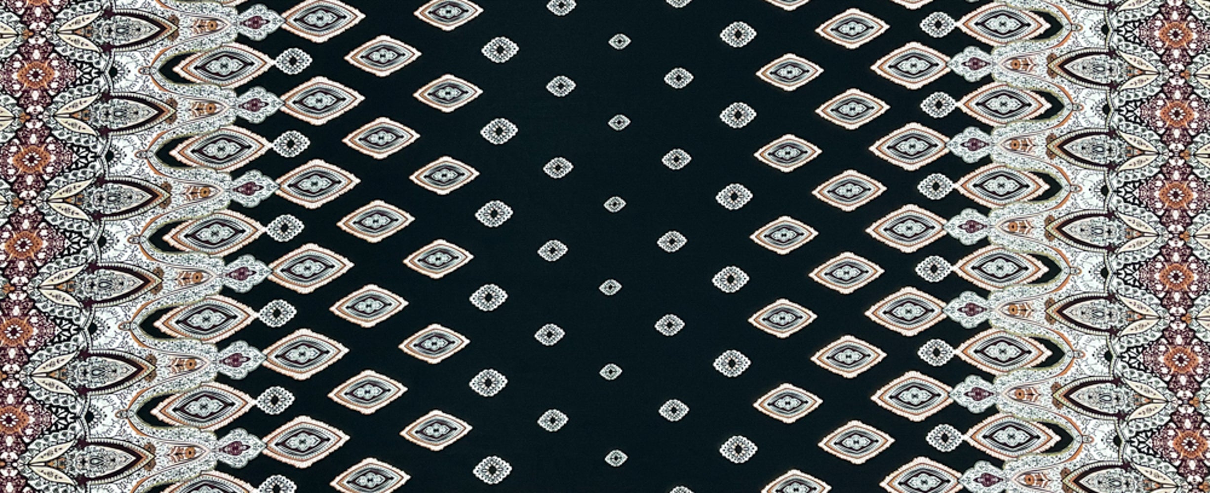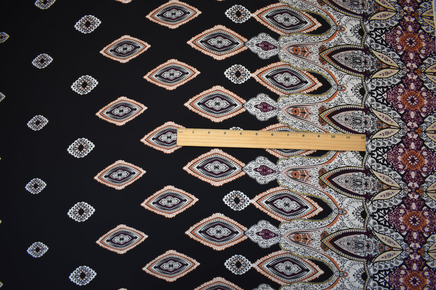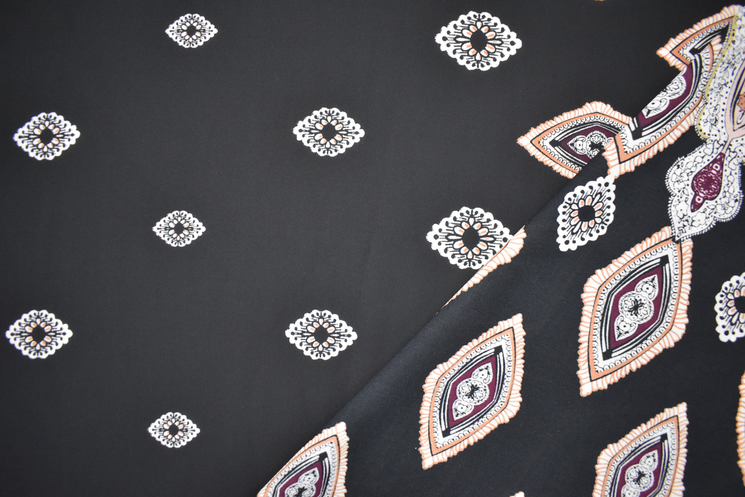 Black-White-Multi Poly Diamond Paisely Border Printed Georgette Woven Fabric