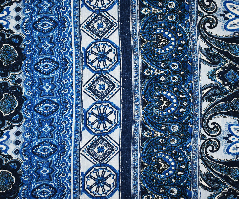 Blue-White-Multi Poly Paisley Baroque Printed Crepe Georgette Woven Fabric