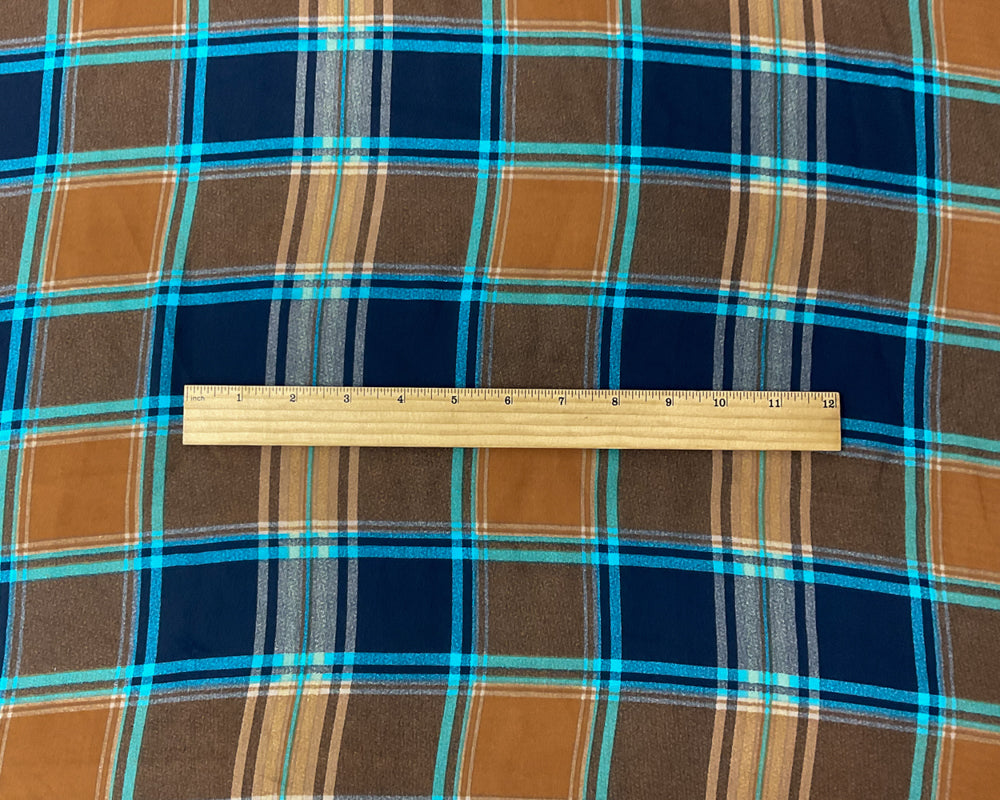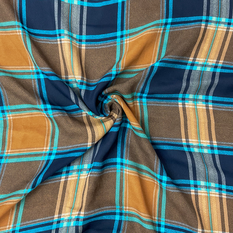 Brown-Blue Beige Poly Plaid Printed Georgette Woven Fabric