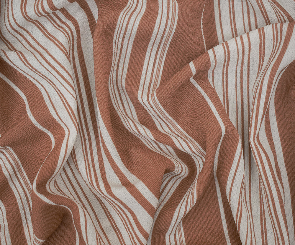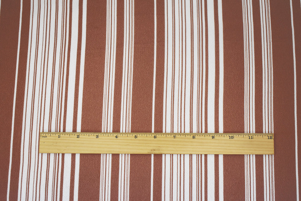 Brown-White Stripe Printed Poly Crepe Georgette Woven Fabric