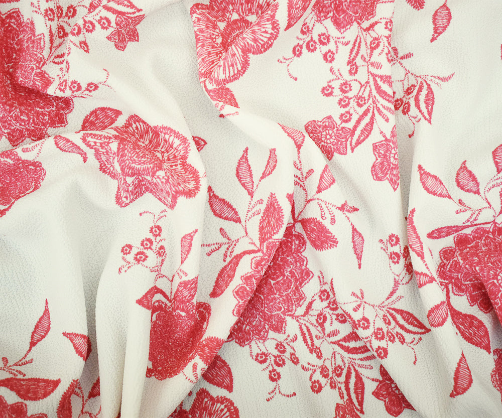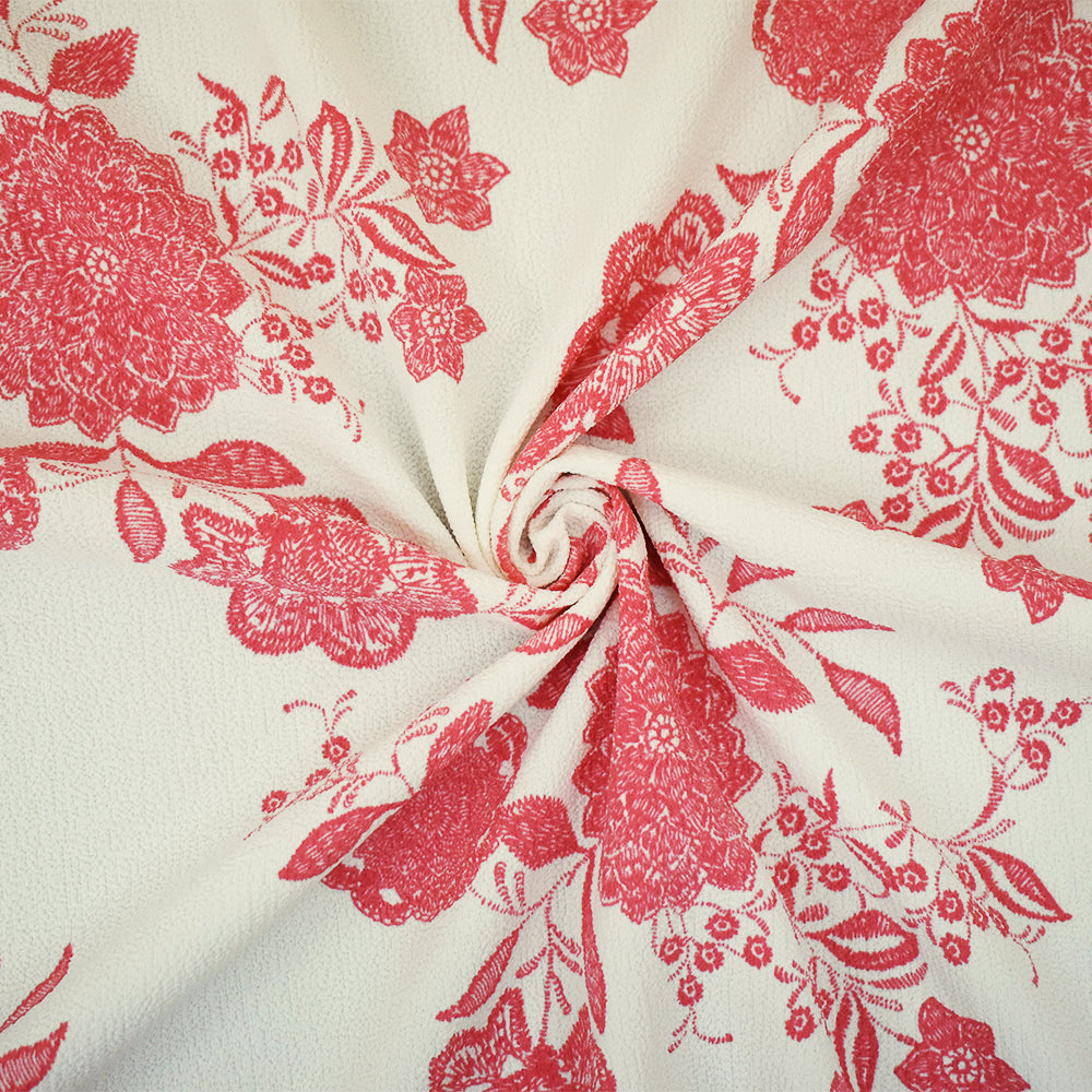 Cherry Pink-White Floral Printed Stretch Spandex Pebble Crepe Georgette Woven Fabric