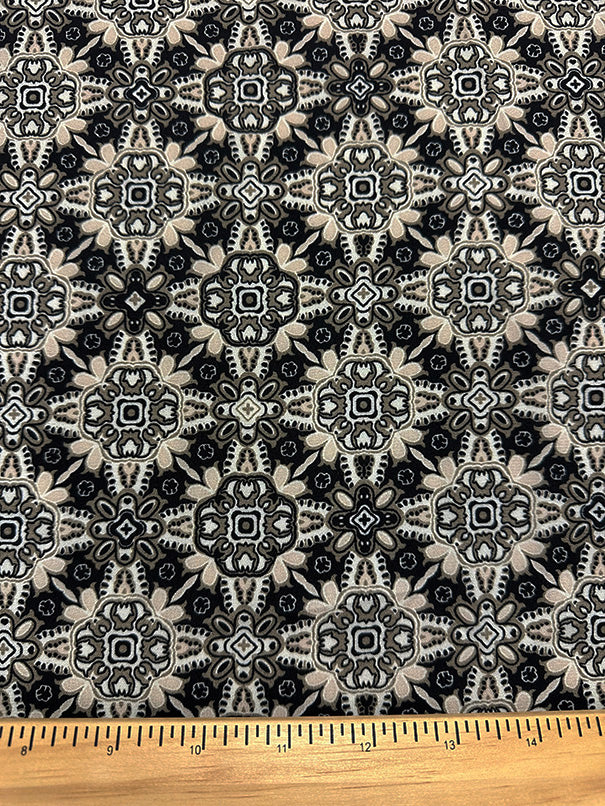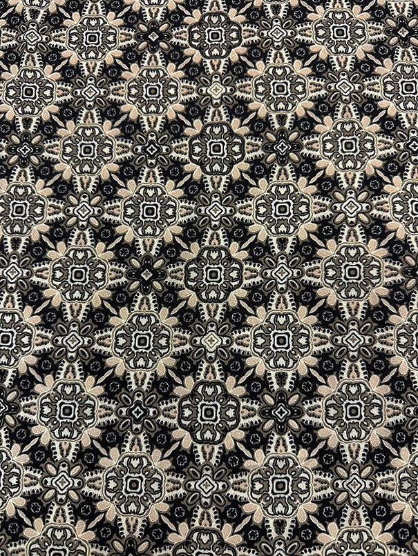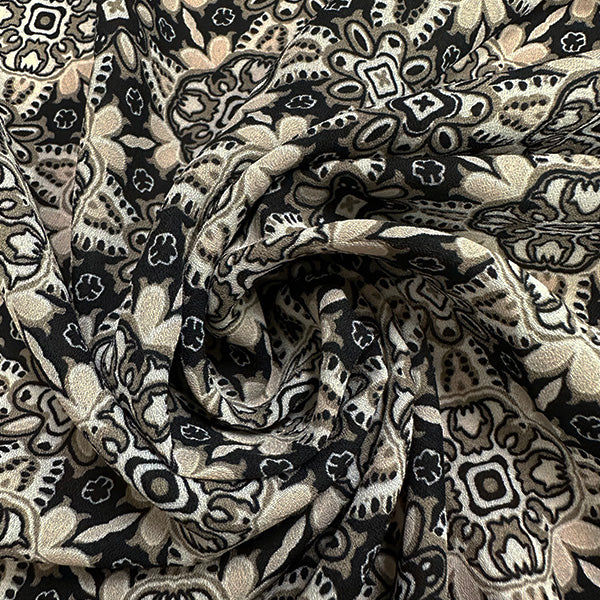 -Cream, Black, Taupe, & Beige Multi Print Poly Georgette Fabric
