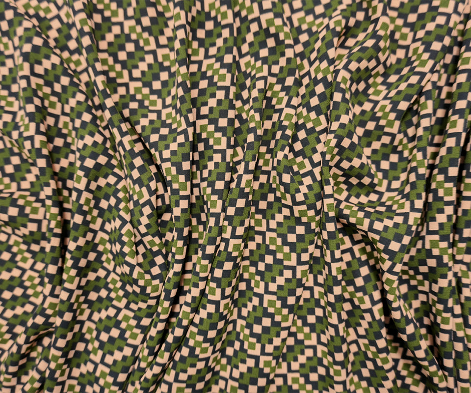 Green-Multi Poly Geometry Pixel Printed Georgette Woven Fabric