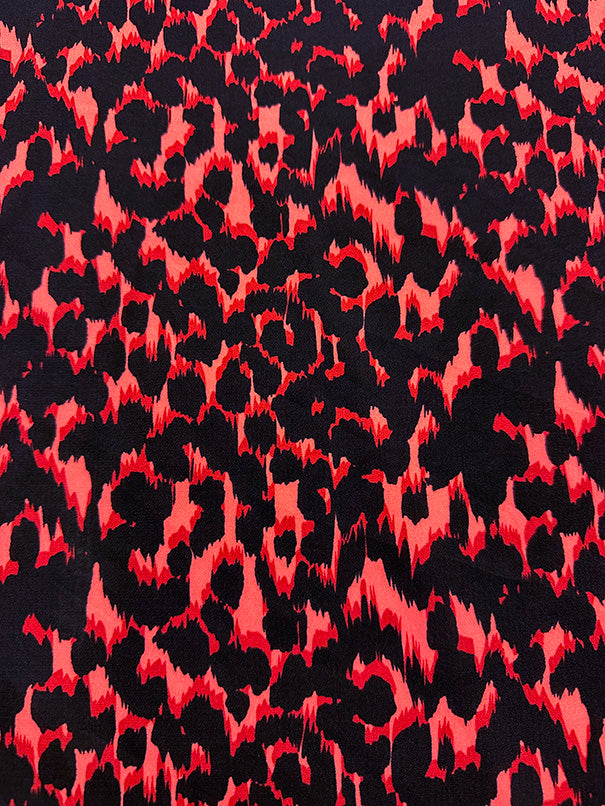 Neon Red Multi Animal Print Poly Georgette Fabric