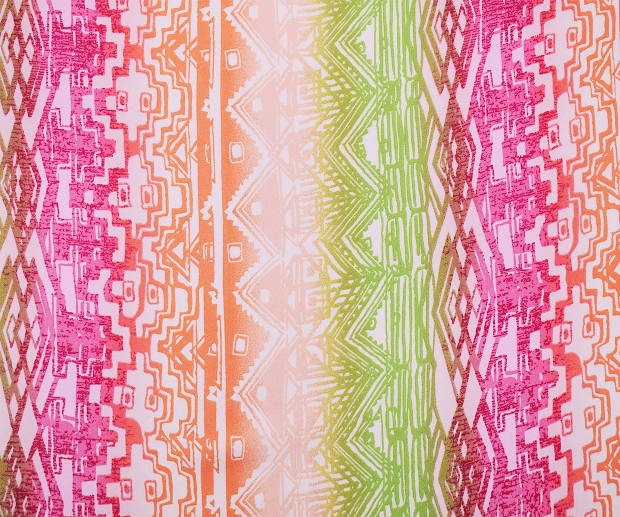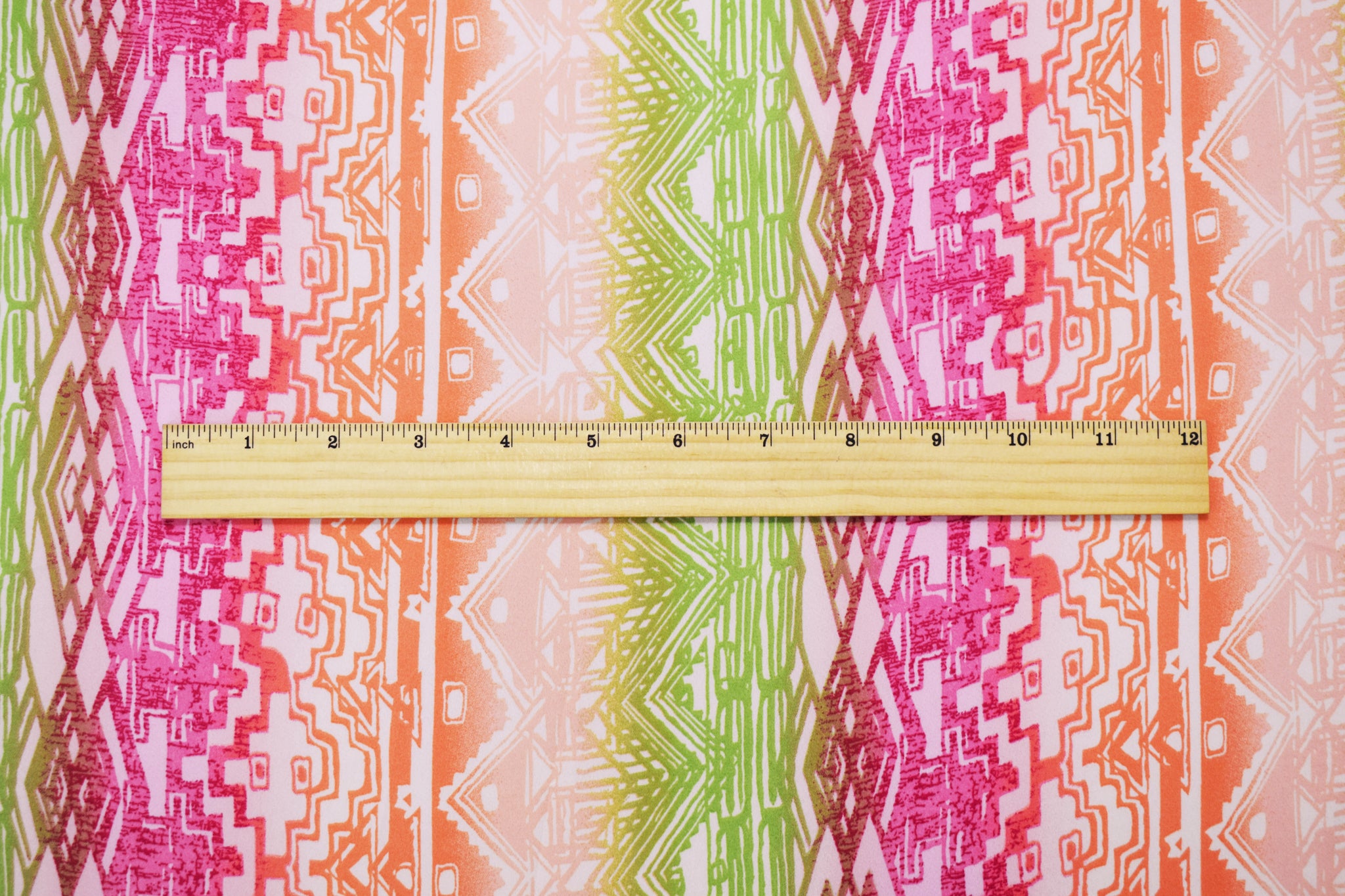 Orange-Multi Poly Aztec Ombre Printed Crepe Momie Georgette Woven Fabric