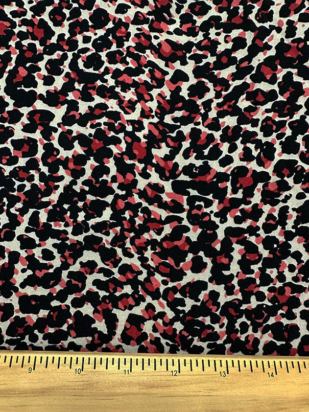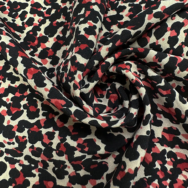 -Pink, Red, & Black Cheetah Animal Print on Beige Poly Double Georgette Fabric