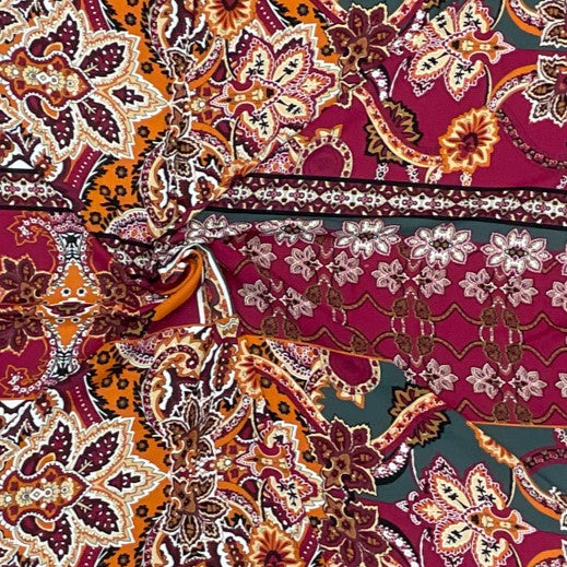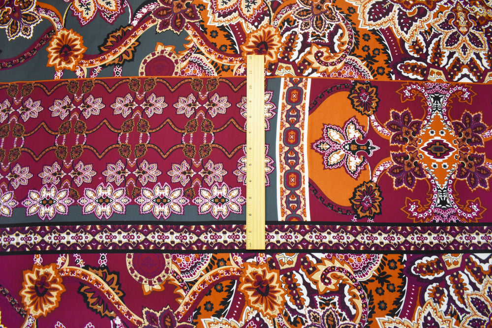 Red-Black-Multi Poly Floral Border Printed Momie Georgette Woven Fabric
