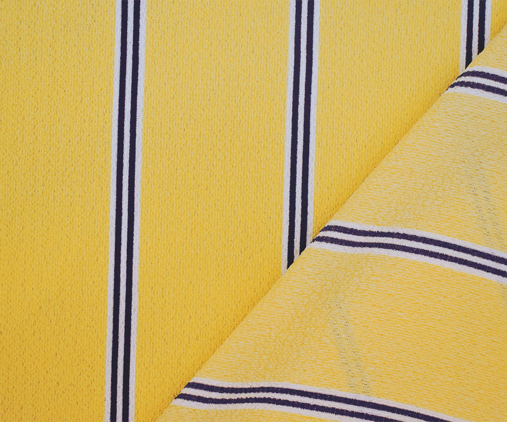 Yellow-Navy-White Stripe Printed Poly Crepe Georgette Woven Fabric