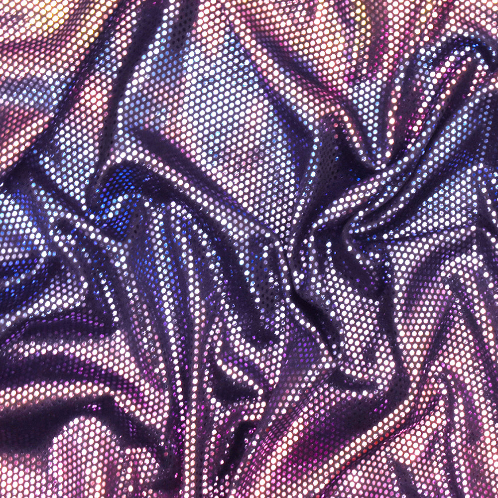 Purple-Multi Hologram Micro Dot Foil Printed Stretch Activewear Fabric