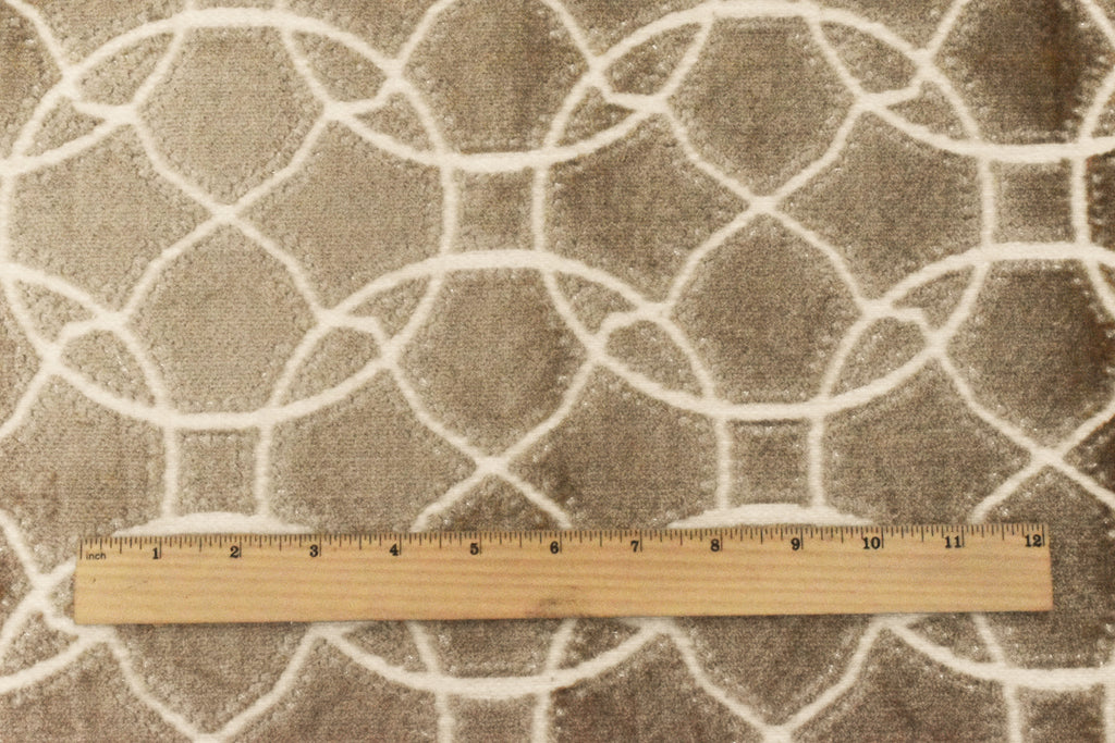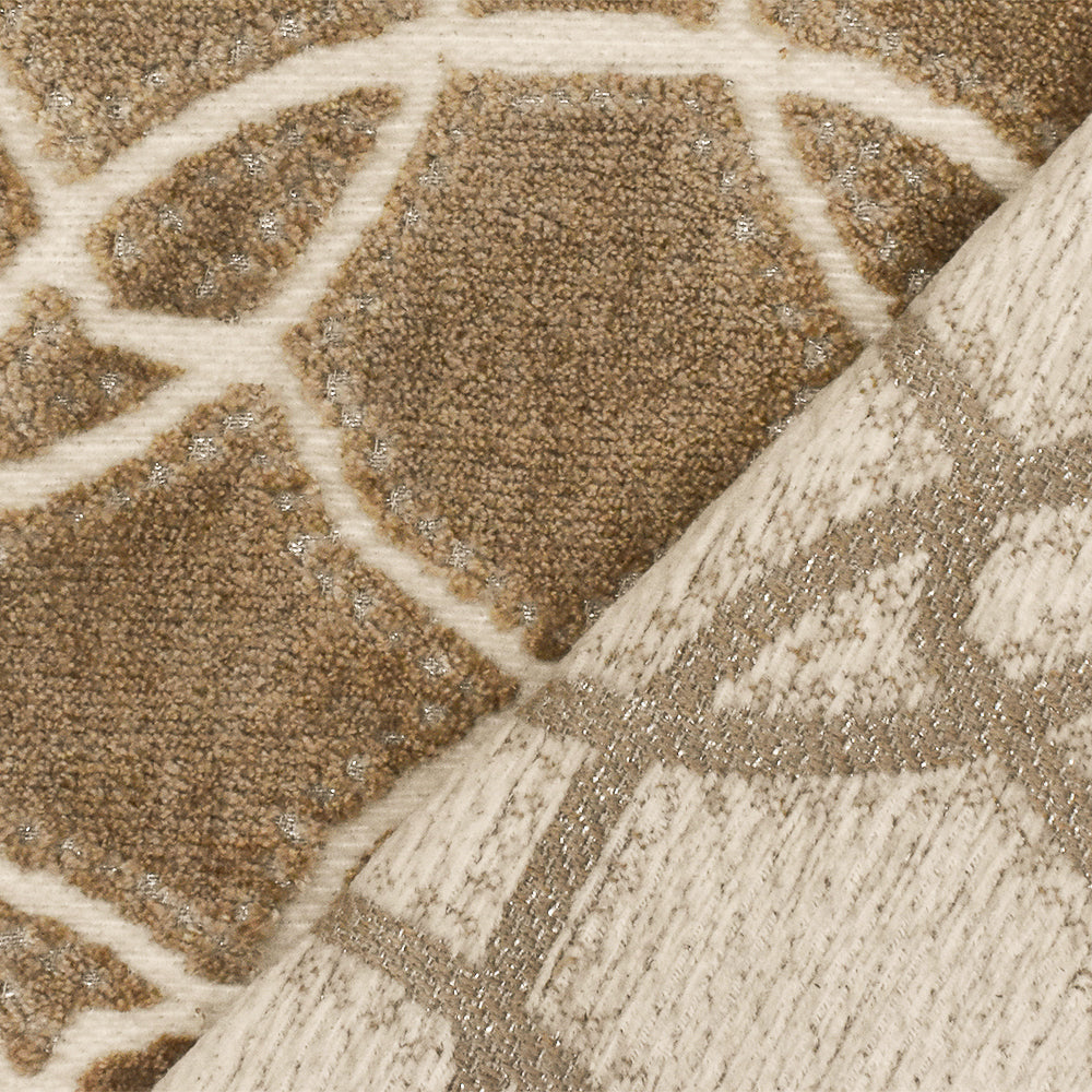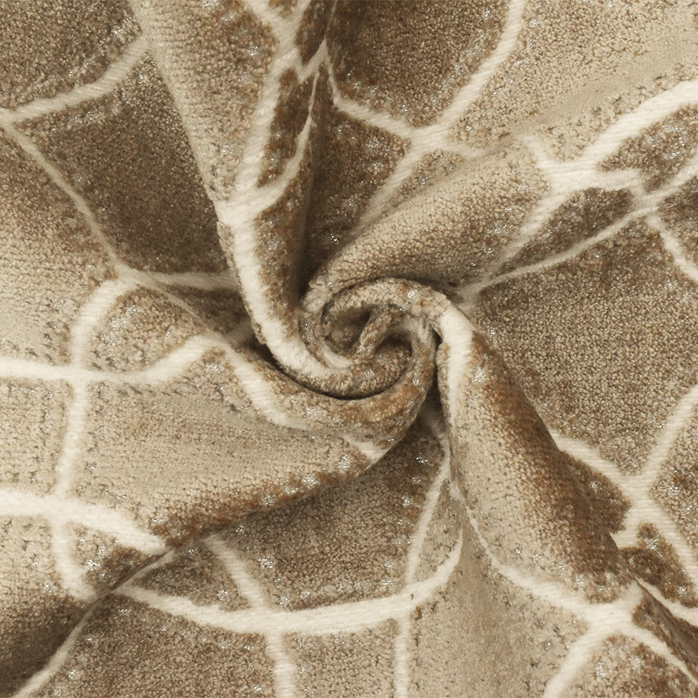 Brown-Beige-Silver Abstract Trellis Pile Velvet Jacquard Decorating Fabric