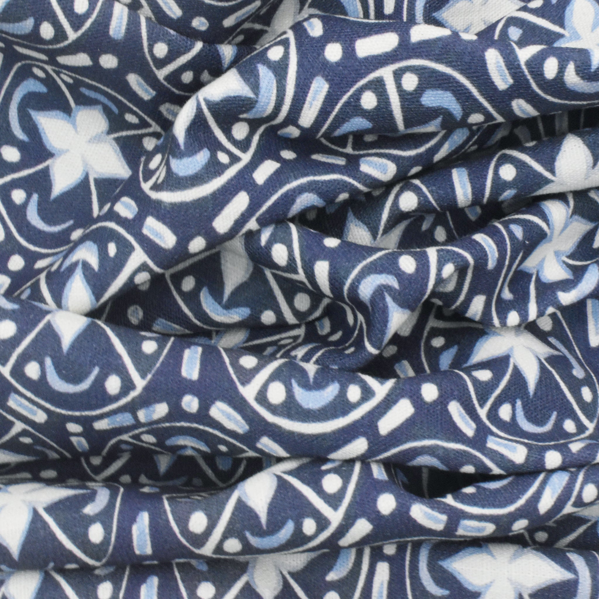 Navy-Sky-Ivory Abstract Tile Printed Slub Home Decorating Fabric