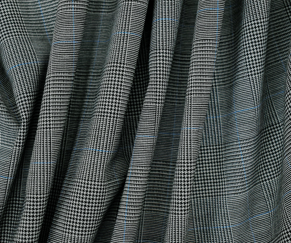 Black-Light Blue-Gray Poly-Wool Glen Plaid Shirting Woven Fabric