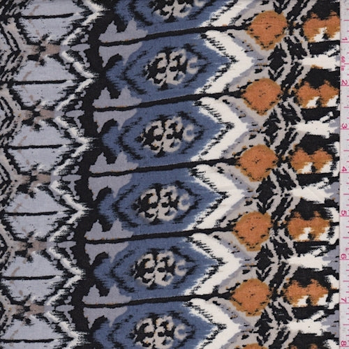 2 YD PC-Pearl Grey/Steel Blue Ikat Rayon Challis Fabric