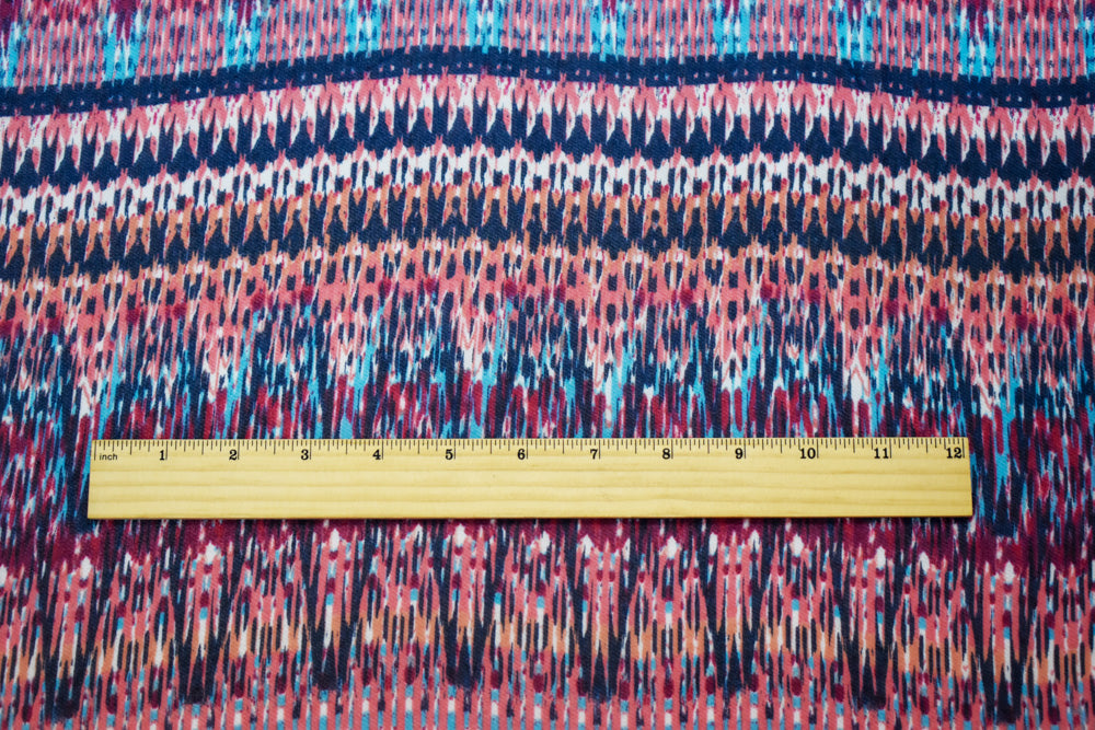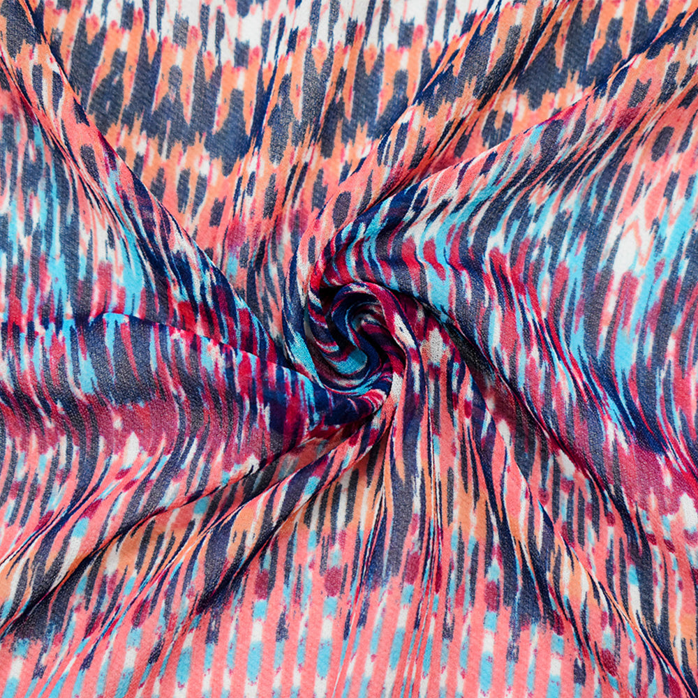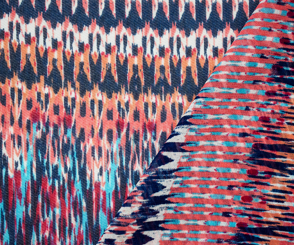 Navy-Coral-Multi Poly Aztec Ikat Pattern Printed Chiffon Woven Fabric