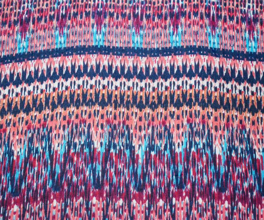 -100% Polyester chiffon woven fabric printed with an Aztec ikat-like inspired pattern