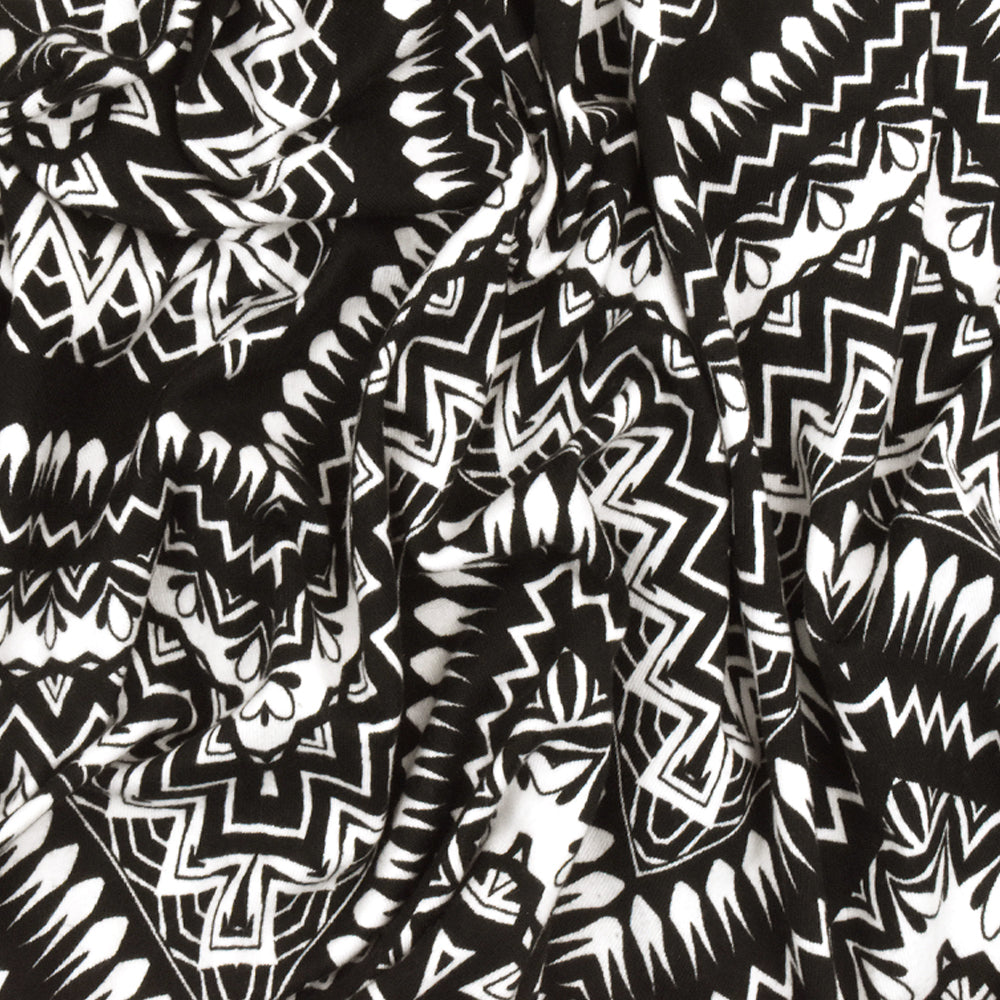 -Chevron with Aztec elements printed on a stretch polyester double brushed ITY knit fabric