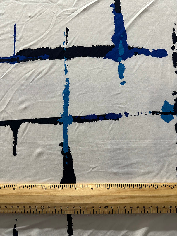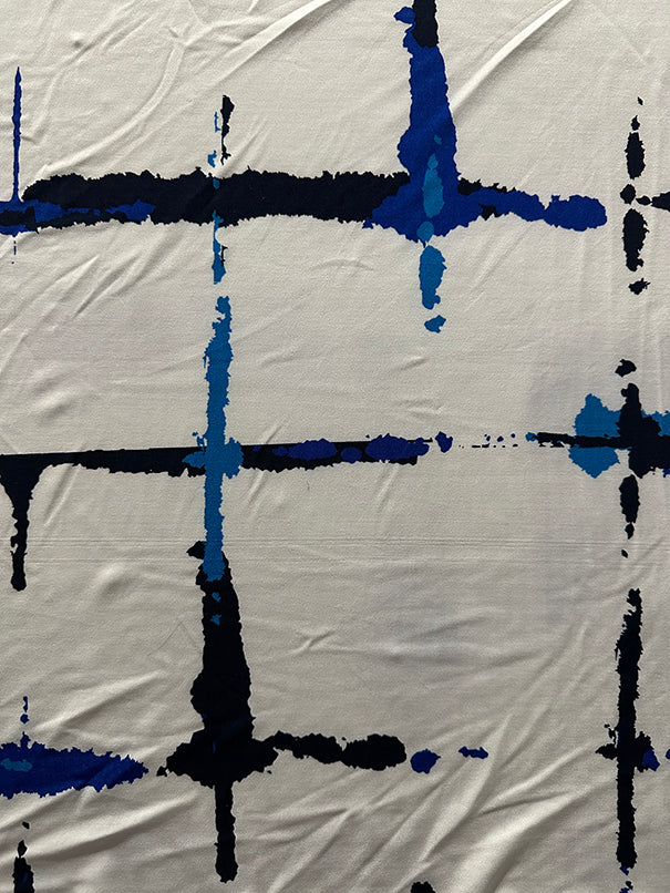Blue Abstract Check Print ITY Jersey Knit Fabric