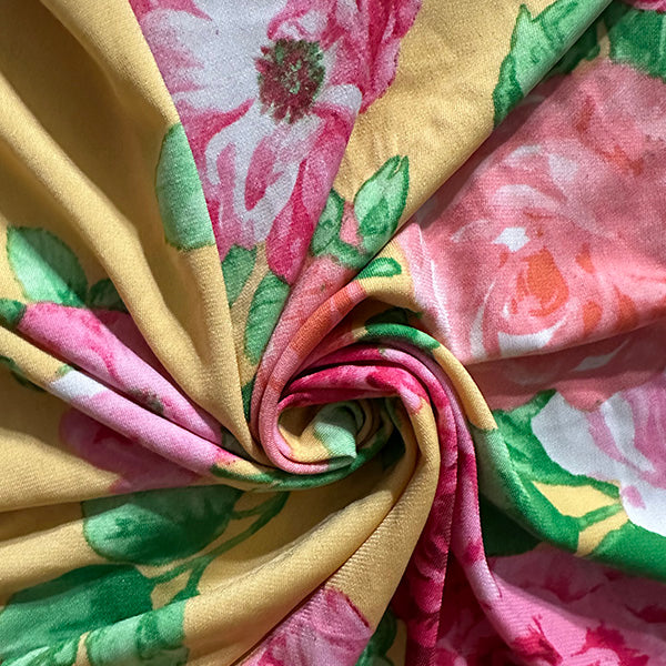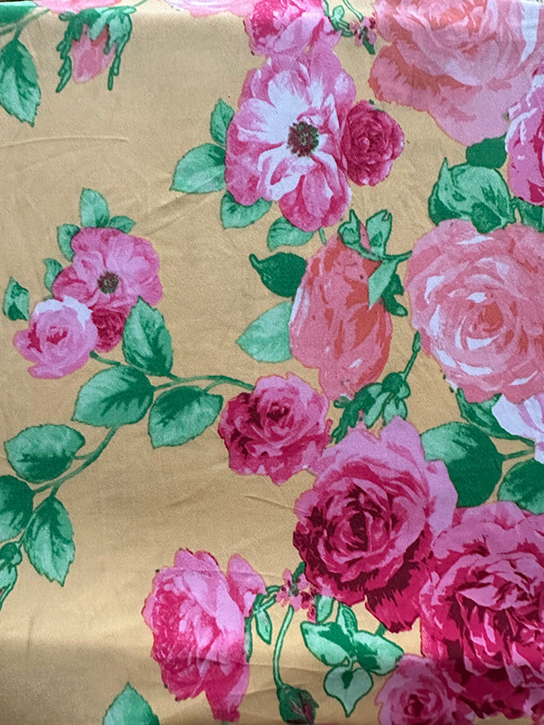 Gold Multi Floral Print ITY Jersey Knit Fabric