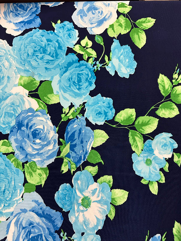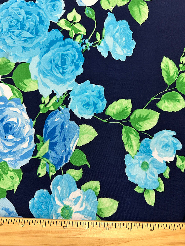 Navy Blue Floral Print ITY Jersey Knit Fabric