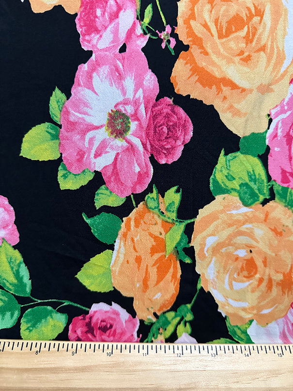 Pink and Orange Roses Print ITY Jersey Knit Fabric